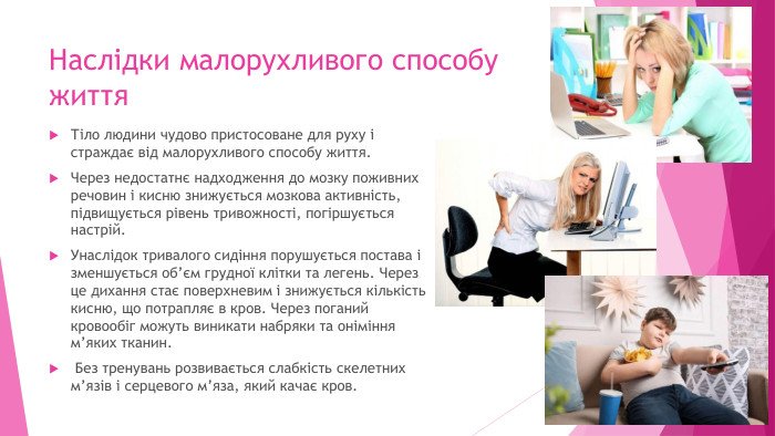 • Стрес і тривога – Нестача руху може погіршити наш емоційний стан.
