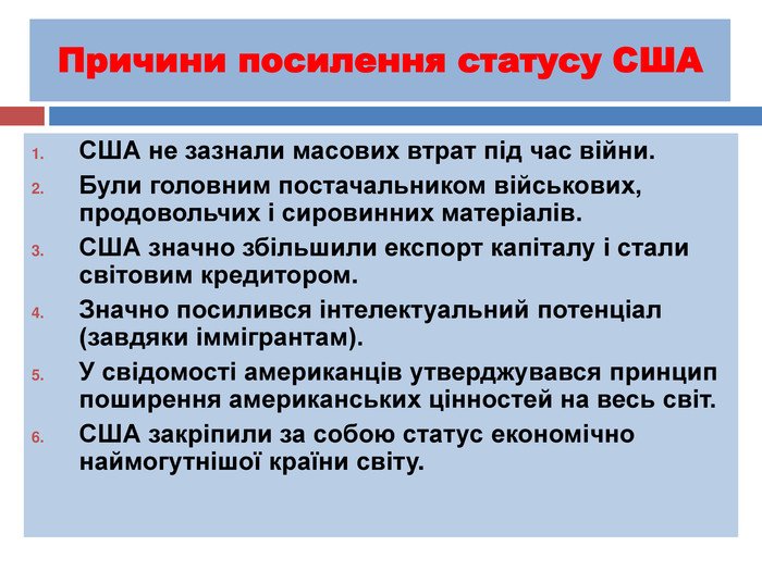 Чи не дивно, але завершення війни переростає в глобальні зміни на ринку. Не тільки виробництво, але і культура, інновації — Америка тепер задає тон у всьому.