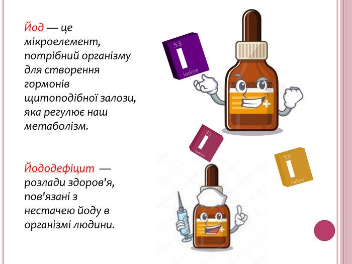 Йод — не просто ще один елемент з таблиці Менделєєва. Це основа для вироблення гормонів щитоподібної залози — тироксину та трийодтироніну. Гормони ці контролюють чимало процесів, від метаболізму до розвитку мозку.